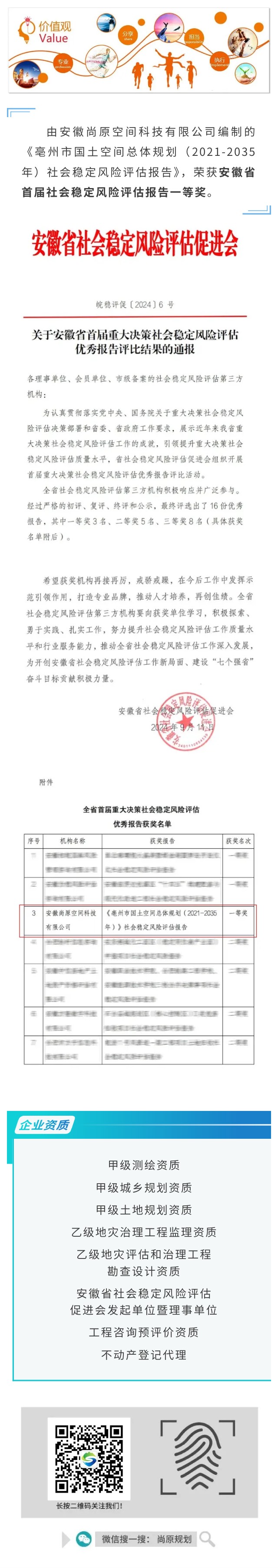 喜訊!安徽尚原空間科技有限公司榮獲社會穩(wěn)定風(fēng)險評估報告一等獎!